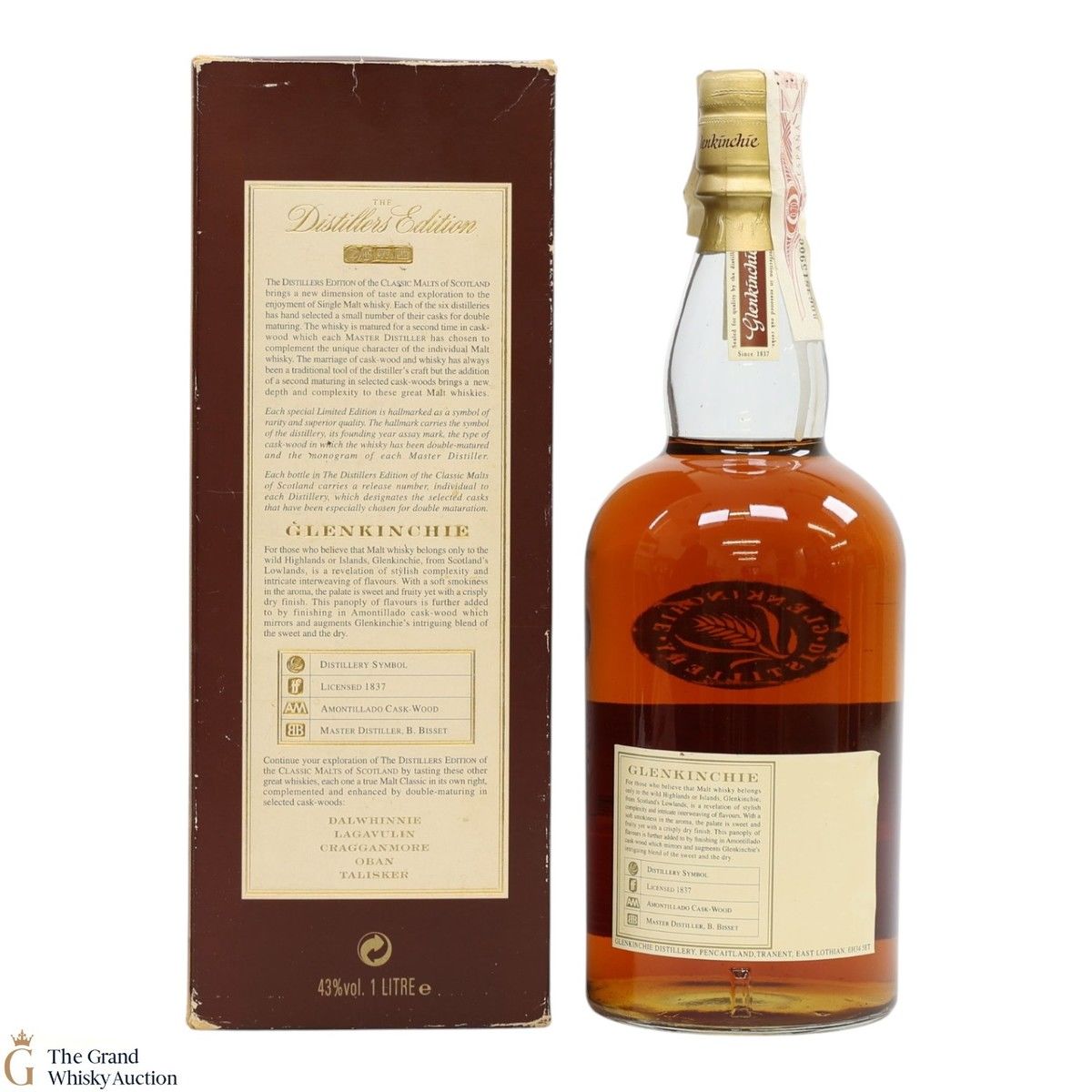 Due to the various ages of bottles and their seals, the condition of liquid is at the buyer's discretion and no claim can be lodged against failure/leakage in transit. Loss and breakage cover is available at 3% of the hammer price as standard. If the lot is not insured, no claim can be lodged against the courier or The Grand Whisky Auction for breakage or loss in transit.